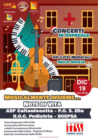 Nella mattinata del 19 dicembre, alle ore 10.30, presso il Reparto di Pediatria dell’Ospedale “S. Elia” dell’ASP di Caltanissetta, si svolgerà la seconda edizione del concerto “Musicalmente insieme… note di vita” tenuto dagli studenti del Liceo Musicale “Manzoni – Juvara” di Caltanissetta che, con canti della tradizione natalizia e altri brani selezionati, si esibiranno davanti ai bimbi ospiti della pediatria.