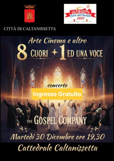 Un appuntamento dedicato alla musica e alla spiritualità animerà il periodo delle festività natalizie a Caltanissetta. Martedì 30 dicembre la Cattedrale di Caltanissetta ospiterà il concerto gospel “8 cuori + 1 ed una voce”, inserito nel programma di Caltanissetta Città del Natale 2025.