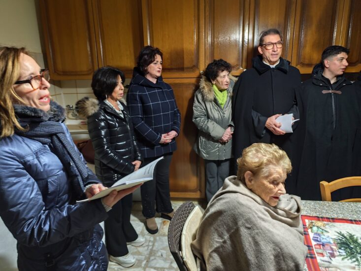 MUSSOMELI – In questi giorni ricorre il 12° ANNIVERSARIO DELLA Parrocchia della Trasfigurazione in Santa Teresa al Castello, di cui il primo parroco è stato l’apprezzato Padre Calogero Mantione, seguito successivamente dall’attuale parroco Padre Vincenzo Giovino. Una parrocchia giovane che si è bene inserita nel contesto mussomelese a servizio dei parrocchiani della zona Castello. Una presenza attiva con bambini, giovani e adulti, guidata appunto da Padre Vincenzo. E proprio in questi giorni, la parrocchia della Trasfigurazione in Santa Teresa al Castello, con i suoi novenari, sfidando il meteo certamente non favorevole hanno fatto visita alle persone che vivono nelle case di riposo, alle persone anziane e sole.Per tutti quanti è arrivata la carezza ed il sorriso del parroco e la gioiosa ninaredda cantata coralmente dai giovani novenari e il loro seguito.