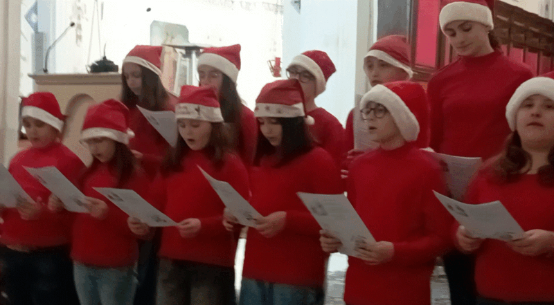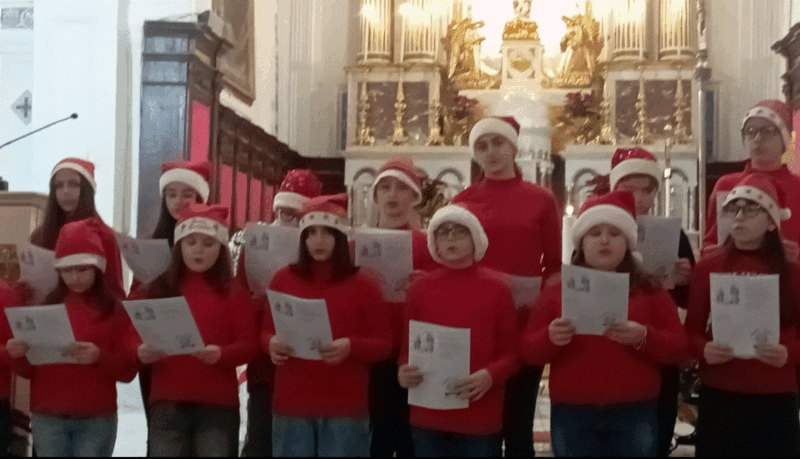 MUSSOMELI – Partecipazione e successo, ieri domenica pomeriggio, per il coro dei bambini della Chiesa Madre – Parrocchia S. Ludovico dove si è svolto il concerto dal titolo “Voci che accendono il Natale”, al termine della celebrazione serale in occasione della ricorrenza della Sacra Famiglia in cui i papà e mamma hanno rinnovato le promesse matrimoniali. Erano complessivamente in 14 che, sotto la guida di Valentina Schifano, che ha avuto affidata la direzione del coro, sono stati i protagonisti della serata a cui si sono preparati con impegno ed entusiasmo. Da sottolineare che è stato un momento educativo, espressivo e di condivisione, finalizzato a valorizzare il lavoro svolto dai bambini e a coinvolgere famiglie e comunità nel clima di festa del Natale A Mariella Valenza è stato affidato il coordinamento dell’evento con la collaborazione di Biagina Genco e Daniela Mongioví. Questi i brani che sono riecheggiati nella chiesa, accompagnati dall’organista Gera Termini e flauto traverso del maestro Salvatore Piparo: Bianco Natale, Tu scendi dalle stelle, Gloria in Excelsis Deo, Jingle Bells, Oh Happy Day, Noi siamo il mondo, ‘A Ninnaredda. I ringraziamenti e le congratulazioni dell’arciprete Padre Achille Lomanto, assai compiaciuto, hanno concluso il concerto del coro dei bambini, a cui è seguito, nell’ attiguo salone, un momento di convivialità.