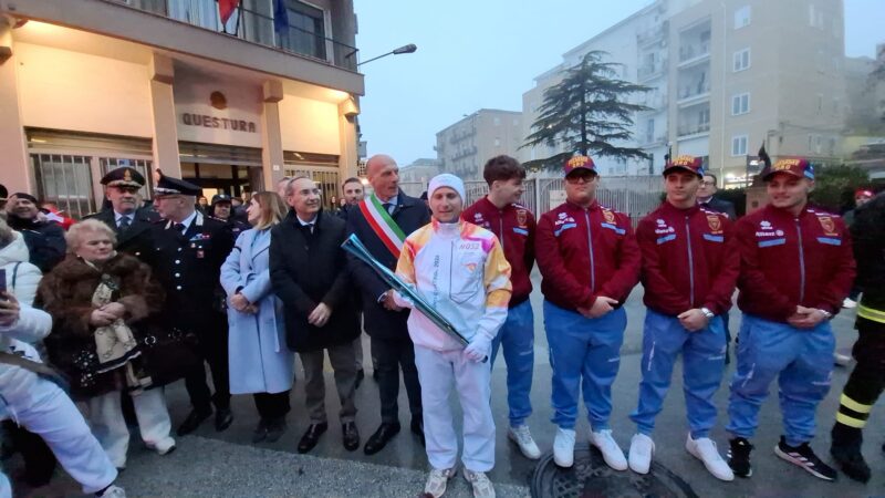 Il momento più significativo del percorso nisseno si è vissuto in via Catania, davanti alla Questura di Caltanissetta, dove si è svolto uno scambio carico di emozione e significato. Protagonisti Mirco Scarantino, atleta delle Fiamme Oro della Polizia di Stato, e il padre Giovanni Scarantino, entrambi olimpionici, che si sono passati la torcia in un gesto che ha unito sport, famiglia e valori olimpici.