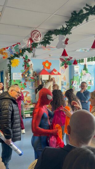 L’amministrazione comunale, insieme all’associazione Quality Life, ha portato doni e panettoni, forniti da Fenimprese Caltanissetta, ai piccoli ricoverati del reparto di pediatria, accompagnati dalla presenza festosa di personaggi animati come Spiderman: un gesto semplice, capace di regalare un sorriso nei momenti più delicati.