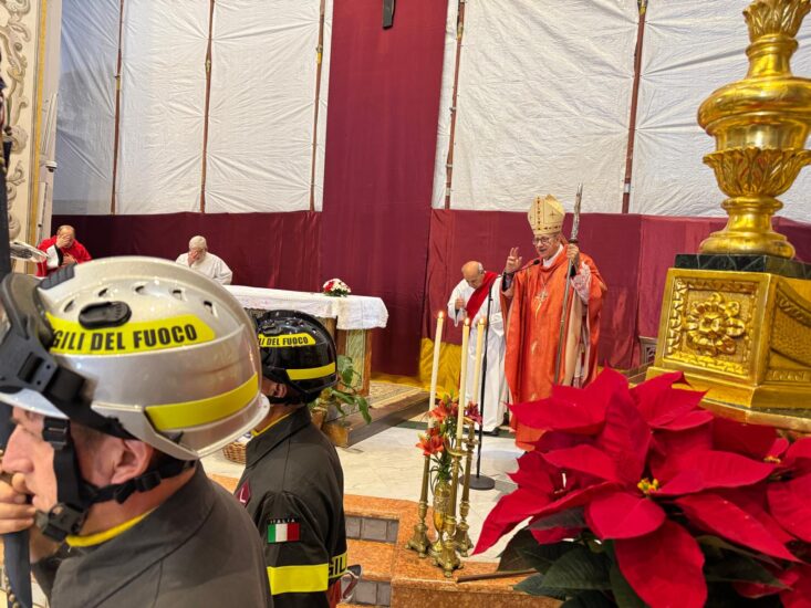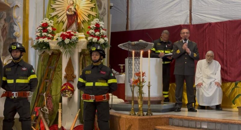 Nel corso della sua omelia, il presule ha rivolto un pensiero speciale al valore del servizio, del sacrificio e della protezione che i Vigili del Fuoco assicurano quotidianamente al territorio, sottolineando l’impegno quotidiano a tutela della sicurezza collettiva, spesso in contesti estremamente complessi e rischiosi.