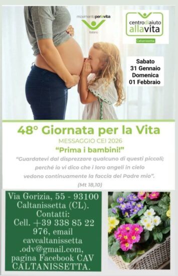 I fondi raccolti oltre a contribuire alle iniziative del CAV vengono destinati all’adozione prenatale a distanza : il Progetto Gemma. Domenica 1° febbraio 2026 si celebra la 48ª Giornata Nazionale per la Vita, ideata dalla CEI, un incontro che da quasi cinquant’anni ricorda alla comunità il valore inviolabile della vita umana, dal concepimento alla morte naturale. Di rilevante importanza è il messaggio del Consiglio Episcopale Permanente della Conferenza Episcopale Italiana in occasione di questa significativa giornata dedicata alla Vita e incentrato sul tema “Prima i bambini” .