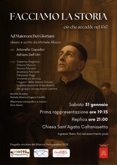 Il momento culminante sarà il 31 gennaio, con la rievocazione storica aperta al pubblico che andrà in scena nella Chiesa di Sant’Agata al Collegio, negli stessi luoghi in cui la vicenda storica ebbe origine. L’evento drammaturgico porta la firma di Michele Albano, autore, regista e direttore artistico.«Fare teatro in questo luogo – spiega Albano – significa restituire bellezza e dignità alla storia della città. È voler ribadire il valore umano nell’affermare che ciascun è frammento imprescindibile di storia.Facciamo la Storia nasce dal desiderio di trasformare un fatto storico in un’esperienza viva, capace di parlare alle persone di oggi. Caltanissetta ha un patrimonio culturale straordinario: raccontarlo insieme alla comunità è un atto di amore e responsabilità».