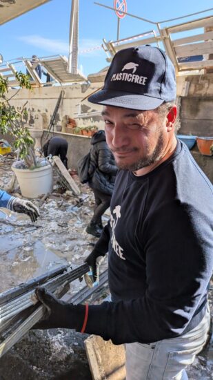 I primi interventi sono partiti in Sicilia, tra le zone più colpite dalla furia del maltempo. Ad Acitrezza e Acicastello, in provincia di Catania, un gruppo di venti volontari Plastic Free, coordinati dal referente provinciale Antonino Giuffrida, è intervenuto già nelle ore immediatamente successive all’evento. “Abbiamo raccolto oltre 1.500 chili di rifiuti, detriti e materiali portati dall’acqua – racconta Giuffrida –. Ma siamo andati oltre: abbiamo messo in sicurezza un’abitazione, tagliato lamiere pericolanti e utilizzato idropulitrici e seghe elettriche per liberare le aree più danneggiate. Tutto grazie alla nostra rete attiva e pronta a operare in collaborazione con le amministrazioni locali”.