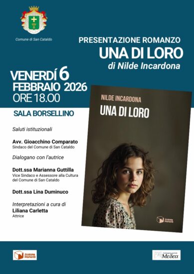 SAN CATALDO – Un viaggio nelle vite delle donne siciliane, tra memoria familiare e ricerca identitaria. È questo il cuore di “Una di loro”, il romanzo di Nilde Incardona, scrittrice nata a Gela e oggi residente a Londra, che approda a San Cataldo per una presentazione in programma venerdì 6 febbraio alle ore 18.00 nella Sala Borsellino del Comune.