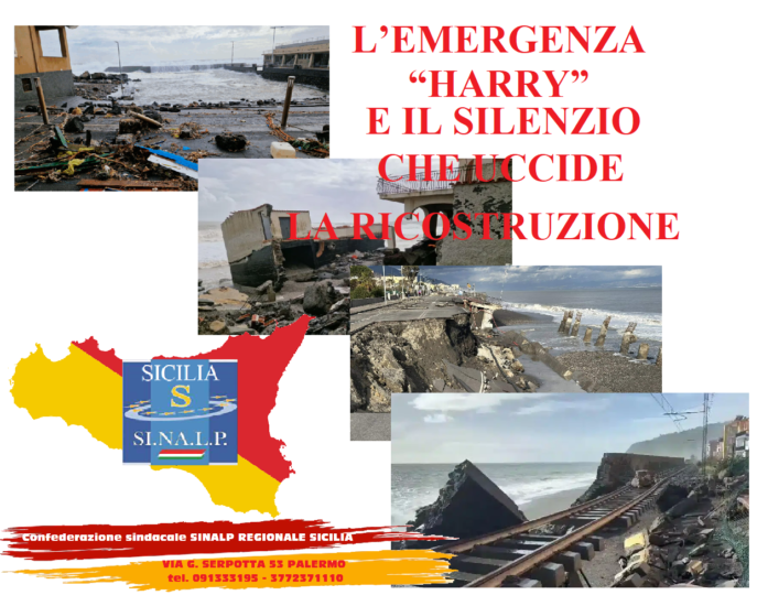 Il Segretario Regionale del SINALP Sicilia, Dr. Andrea Monteleone, sottolinea «La rapida scomparsa dell’emergenza Harry dai TG nazionali che non è solo una mancanza di rispetto per le vittime e per chi ha perso tutto, ma è una strategia del silenzio che consente alla politica di spostare altrove le priorità, lasciando le ferite della Sicilia aperte e impossibili da rimarginare.»