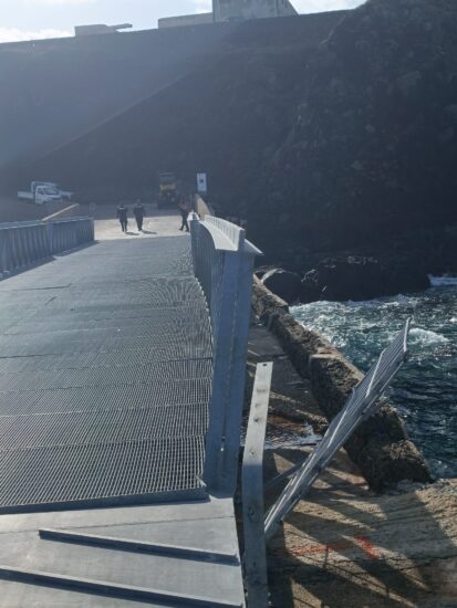 La forte mareggiata ha prodotto una deformazione delle travi in acciaio della prima campata lato mare, ancora saldamente vincolate ai piloni sottostanti, e ha divelto le ringhiere del passaggio pedonale. Nei prossimi giorni saranno effettuate ulteriori verifiche con prove di carico statico e dinamico.