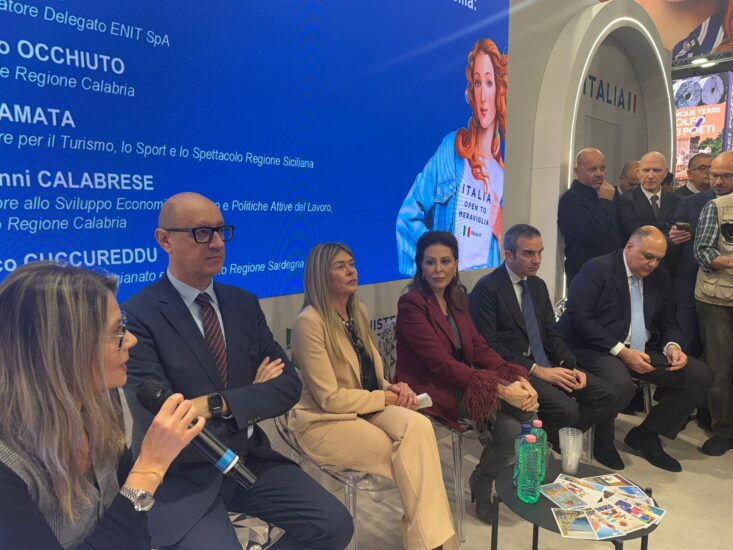 In occasione della BIT di Milano, il Ministro del Turismo Daniela Santanchè, insieme al Presidente della Regione Calabria Roberto Occhiuto, all’AD di Enit SpA Ivana Jelinic e agli Assessori al Turismo della Regione Sicilia Elvira Amata e della Regione Sardegna Franco Cuccureddu, ha presentato la conferenza stampa “Welcome to Sud Italia. Sicilia, Calabria e Sardegna: la Meraviglia non si ferma”.