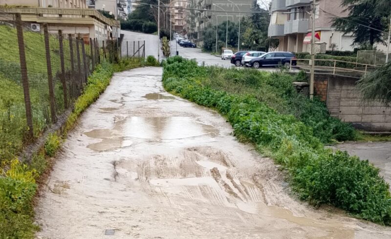 CALTANISSETTA. Un nostro lettore ha inviato una segnalazione, supportata da documentazione fotografica, a proposito della situazione di criticità che si registra in Via F. Trigona della Floresta (zona Pinzelli) a seguito delle piogge cadute copiose in questi ultimi giorni in Città.