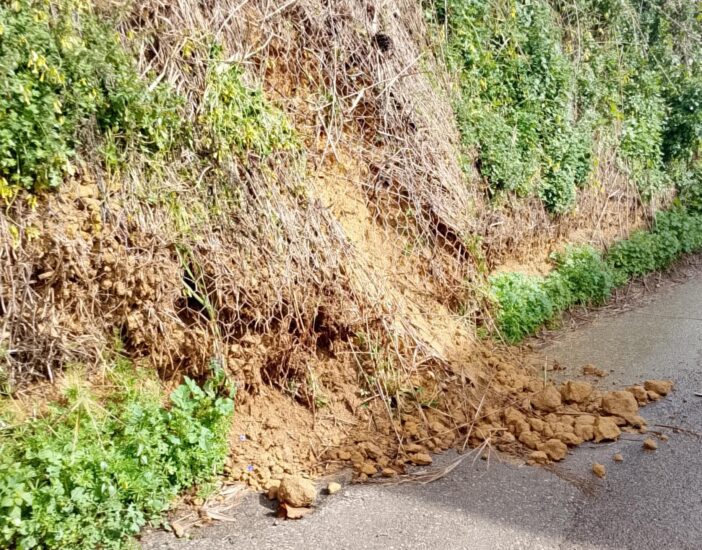 Qui, a causa delle ultime precipitazioni, la strada di accesso alla zona abitata e’ stata transennata a causa di caduta massi. Più di 300 sono le persone costrette ad accedere nelle proprie abitazioni utilizzando strade alternative pericolose, danneggiate e sempre allagate.