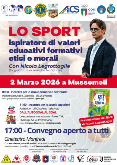 MUSSOMELI – In programma il prossimo 2 marzo una giornata dedicata allo sport, alla salute, alla fede e alla donna con la presenza di un ospite d’eccezione: Nicola Legrottaglie, ex giocatore di Juventus, Milan e della Nazionale. Ad organizzare l’iniziativa le associazioni Fidapa e, Lions club di Mussomeli e del Vallone, Aics provinciale di Agrigento, con il patrocinio del comune di Mussomeli e la preziosa collaborazione degli Istituti scolastici Leonardo Da Vinci, Virgilio e Hodierna. Alla manifestazione, a dimostrazione della perfetta sinergia tra le associazioni del terzo settore operanti nel paese Nisseno, hanno dato disponibilità la Don bosco, la Chiaramontana, Proloco, Fratres, Misericordia, Cisom, l’associazione Vita e il locale Juventus club. La giornata inizierà alle 8,30 presso la palestra comunale Tulumello dove i ragazzi delle scuole elementari parteciperanno ad un laboratorio volto alla promozione della sana alimentazione a scuola: progetto che quest’anno Aics sta portando nelle aule attraverso l’impegno di trenta comitati italiani e che sta coinvolgendo un totale di 3000 bambini impegnati in laboratori per la corretta alimentazione. Coinvolta per questa iniziativa la nutrizionista Olga Ognibene. Nel corso della mattinata i bambini trascorreranno del tempo con Legrottaglie disponibile a farsi immortalare in selfie e foto. Alle 11presso L’auditorium Lillo Zucchetto, il giocatore insieme alla Associazione Empower con Carmelo Culora, Daniel Wilson e Giorgia Longo realizzeranno con i ragazzi degli Istituti Hodierna e Virgilio un incontro con un power Talk challange e una live, per una esperienza interattiva. Iniziativa che sarà possibile grazie alla preziosa collaborazione delle Dirigenti Camerota e Cumella e al corpo docente. Alle 17, la conclusione della giornata che si terrà al cineteatro Manfredi, quando andrà in scena un focus tra sport, fede e salute con un omaggio all’impegno delle donne, e che vedrà tra i relatori di Gero Valenza, medico e giocatore, Rita Guarino, ex allenatrice delle compagini femminili di Juventus e Inter, Elisa Iannello campionessa mondiale di Muay Thay e Nicola Legrottaglie. Mentre per le federazioni e gli enti di promozione, verranno ospitati Sandro Morgana, presidente FIGC-LND Sicilia, Giuseppe Petix vice presidente Aics Sicilia, Maria Cristina Corrente, vice presidente del Coni Sicilia, Giuseppe Ansaldi presidente del Coni Caltanissetta. Modereranno gli incontri i giornalisti Gandolfo Pepe e Giuseppe Taibi. Previsti interventi musicali a cura della Leonardo’S Ensamble dell’Istituto Leonardo Da Vinci Mussomeli. I saluti della giornata saranno affidati ai presidenti delle tre associazioni organizzatrici ed ai vertici dell’Amministrazione comunale di Mussomeli.