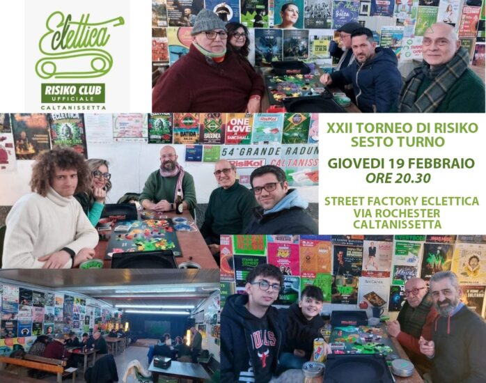 “Andiamo a questa assemblea- dichiarano dal direttivo uscente- con la consapevolezza di avere svolto un’attività, durante il 2025, piena di eventi. Siamo stati, insieme ad altri Club siciliani, promotori del Campionato regionale sia individuale che a squadre; abbiamo organizzato un Master nazionale, assegnatoci dall’editore , si sono giocati 5 Open e 5 tornei interni, con un coinvolgimento di 347 tra giocatrici e giocatori, 254 tavoli e 64 turni di gioco (dati Editrice Giochi Forum). Per la quarta volta abbiamo partecipato con una squadra al Campionato Nazionale a Squadre (composta per 4/6 da giovani giocatrici e giocatori del Club). Insomma siamo un Club che, grazie alla splendida location di Eclettica Street Factory, riesce a organizzare eventi e ci riesce anche bene. E che dire dei fantastici premi realizzati dalla nostra artista – ceramista Maria Pia Matraxia, vere e proprie opere d’arte uniche nel suo stile che richiamano il mondo del Risiko!. Per il 2026 oltre a mantenere il volume degli eventi da organizzare, vorremmo andare nelle scuole, con la collaborazione dei dirigenti scolastici, a divulgare e coinvolgere i giovani al gioco del Risiko! che può essere un ottimo passatempo che ti fa stare con gente di tutte l’età a confrontarsi e a stare insieme. Il club del Risiko! di Caltanissetta è anche questo!”