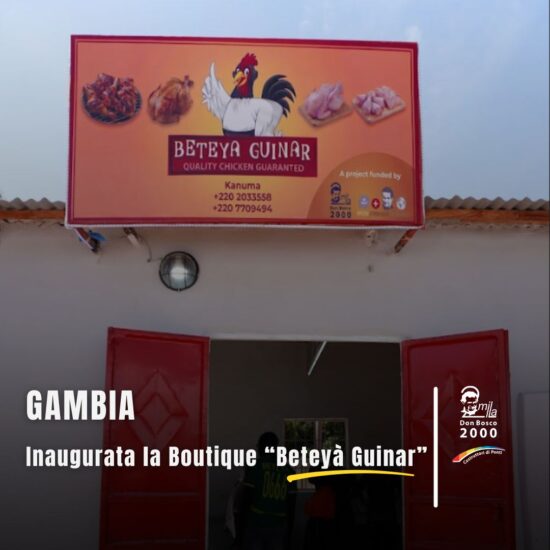 È stata inaugurata la Boutique “Beteyà Guinar”, il punto vendita che segna la conclusione del progetto di cooperazione circolare tra Italia, Gambia e Senegal promosso da Don Bosco 2000 – Impresa Sociale e cofinanziato da Fondazione Opera Don Bosco nel Mondo. All’inaugurazione hanno preso parte i sindaci del territorio, rappresentanti delle autorità locali e delle associazioni della comunità, a testimonianza dell’importanza dell’iniziativa per lo sviluppo economico e sociale dell’area.