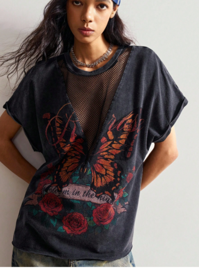 La t-shirt Bohemela Plus Size con stampa a farfalla e patchwork in rete è un capo vivace e audace, pensato per le donne curvy. È un mix di arte, stampe e un tocco di design urbano, che la rende un’opera d’arte da aggiungere a qualsiasi guardaroba casual. Le stampe della farfalla e della lettera sono realizzate con una finitura dinamica che simboleggia creatività e unicità.