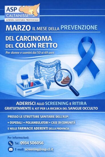 In occasione di marzo, mese dedicato a livello nazionale alla prevenzione del carcinoma del colon-retto, l’Azienda Sanitaria Provinciale di Caltanissetta rinnova il proprio impegno nella lotta contro i tumori con una campagna di screening capillare su tutto il territorio provinciale. Il tumore del colon-retto è una patologia che, se diagnosticata nelle fasi iniziali, presenta altissime probabilità di guarigione. Per questo motivo, l’ASP invita attivamente i cittadini a partecipare ai controlli gratuiti. La campagna è rivolta a: Donne e uomini, Età compresa tra i 50 e i 69 anni.