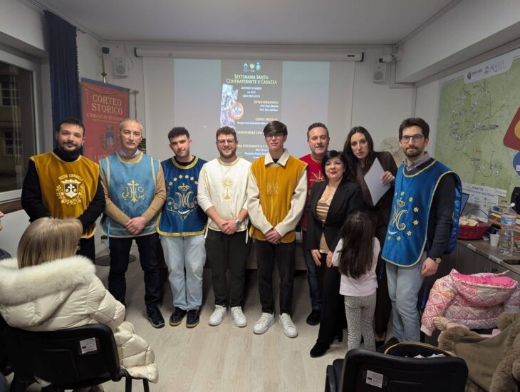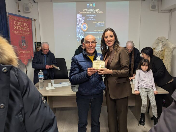 MUSSOMELI – Una tabella di marcia, quella della Pro Loco di Mussomeli, che sembra non fermarsi mai, anzi pronta a festeggiare il prossimo 9 maggio i cinquant’anni di impegno, passione e tante attività con i suoi numerosi e valenti personaggi succedutisi nel tempo e che hanno contribuito a costruire il suo mosaico, fatto di eventi e ricordi. Intanto, ieri sera, con i saluti istituzionali della Presidente Zina Falzone, nonostante un meteo instabile, ha avuto luogo l’incontro culturale riservato alla settimana santa, confraternita e casazza, registrando un pubblico attento e compiaciuto per lo svolgimento della serata. Sono stati coinvolti nella conduzione della serata il giornalista nonché socio Peppe Taibi e, come relatori, noti docenti, lo storico Tano Schifano e l’ex sindaco di Mussomeli, Enzo Giardina, con un argomentare scorrevole e piacevole che ha spaziato nella storia delle confraternite e nella storia delle casazze, a cui si è inserito per le confraternite, il confrate Gero Riggio che ha sapientemente illustrato il contesto delle lamentazioni, la composizione e l’interpretazione. Il gruppo dei lamentatori era formato da – Prima Voce Salvatore Misuraca (confraternita SS. Sacramento in San Giovanni Battista); Seconda Voce Lino Maida (Arciconfraternita Ss. Sacramento Madrice); Seconda Voce Vincenzo Lo Conte (confraternita Maria Ss. Del Monte Carmelo); Basso Gero Riggio (confraternita Maria Ss. Del Monte Carmelo); Basso: Vincenzo Morreale (confraternita Maria Ss. delle Vanelle): Falsetto Vincenzo Lanzalaco (confraternita Maria Ss. Dei Miracoli) e Francesco Frangiamore. Da sottolineare che durante l’intrattenimento culturale, sullo sfondo, scorrevano le immagini degli scatti fotografici messi a disposizione da Giovanni Mancuso e dal fotografo Franco Amico, presenti nell’incontro. Va sottolineato che c’è stato anche uno spazio per ricordare il compianto socio della Pro Loco Peppe Piccica, il cui ricordo, presente la famiglia, è stato affidato alla giornalista Emilia Di Piazza, mentre, sullo sfondo, scorrevano le immagini dello scomparso, fornite da Roberto Mistretta ed il video realizzato dall’agenzia Sprescia. E’ stato possibile, poi, guardare. un video in movimento su foto assai antiche inerenti la settimana santa a Mussomeli., curato, grazie alla sua passione, dal fotografo Tonino Catania. Poi, due fuori programma a tema, hanno concluso l’incontro. L’ascolto di una poesia, declamata dallo stesso autore, il poeta Franco Maida ed una poesia, scritta e letta dal signor Nino Russo. Il tutto è stato coordinato dall’attiva vice Presidente della Pro Loco Cinzia Frangiamore. Dunque, un evento culturale realizzato a più mani, in sinergia con i ragazzi del servizio civile della Pro Loco: Marika Castiglione, Mario Aina e Desiderio Barbera. Un altro tassello che si aggiunge nel diario della Pro Loco di Mussomeli.