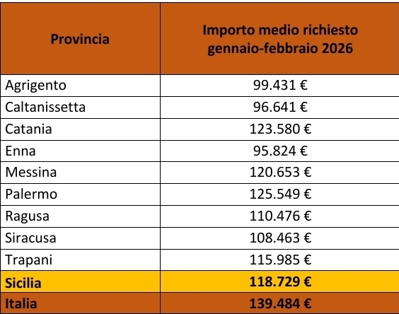 Milano. Il 2026 si è aperto positivamente sul fronte dei mutui; secondo l’Osservatorio Facile.it – Mutui.it, nei primi due mesi dell’anno l’importo medio richiesto in Sicilia è aumentato del 2% rispetto a dodici mesi fa, arrivando a 118.729 euro. In leggero calo l’età media dei richiedenti, che passa dai 41 anni dei primi due mesi del 2025 ai 40 anni del 2026, mentre il valore medio dell’immobile oggetto di mutuo è rimasto stabile. In calo invece il peso delle surroghe, passate in un solo anno dal 26% al 21%. Guardando alla tipologia di tasso richiesto, il fisso resta quello preferito dai siciliani ma sale significativamente la quota di chi ha puntato ad un tasso variabile o misto, che passa in dodici mesi da meno dell’1% a quasi l’8% del totale. L’andamento provinciale Analizzando le richieste di mutuo raccolte in Sicilia nei primi due mesi del 2026 emergono importanti differenze a livello locale. Palermo è la provincia siciliana dove tra gennaio e febbraio 2026 è stato richiesto l’importo medio più alto (125.549 euro), seguita da Catania (123.580 euro), Messina (120.653 euro) e Trapani (115.985 euro). Continuando a scorrere la graduatoria si posizionano le province di Ragusa (110.476 euro), Siracusa (108.463 euro), Agrigento (99.431 euro) e Caltanissetta (96.641 euro). Chiude la classifica regionale la provincia di Enna (95.824 euro). L’offerta dei tassi oggi L’aumento della richiesta dei mutui variabili segnalato sopra è legato all’andamento dei tassi; secondo le simulazioni di Facile.it, per un finanziamento da 126.000 euro in 25 anni, il miglior tasso variabile (TAN) disponibile online è 2,34% con una rata iniziale pari a 555 euro. I migliori tassi fissi, invece, partono da un tasso (TAN) del 3,15% ed una rata di 607 euro, vale a dire circa 50 euro più alta rispetto a quella variabile. «Non esiste una scelta migliore in assoluto tra tasso fisso e variabile, ma è importante scegliere con attenzione e sulla base delle caratteristiche di ciascun mutuatario. Il variabile offre un’opportunità di risparmio iniziale, ma in contesti di grande incertezza come quello attuale, il beneficio potrebbe assottigliarsi se non sparire del tutto. Il consiglio è di farsi aiutare da un consulente esperto per scegliere la soluzione più adatta», spiegano da Facile.it.