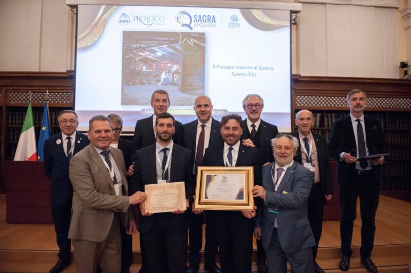 SUTERA – La Pro Loco di Sutera ha ottenuto il prestigioso marchio di “Evento di Qualità” conferito dall’UNPLI. Il riconoscimento è stato ufficialmente assegnato lo scorso 16 marzo, presso il Senato della Repubblica, in una cornice istituzionale di altissimo valore. L’importante risultato premia il lavoro, la passione e l’impegno costante di tutti coloro che contribuiscono alla valorizzazione del territorio, delle tradizioni e della identità culturale. Dalla dirigenza locale della Pro Loco arriva” il ringraziamento a tutti i partecipanti al Presepe Vivente, ai volontari, ai collaboratori e a tutta la comunità di Sutera che con impegno e dedizione ha contribuito al raggiungimento di questo prestigioso riconoscimento”.