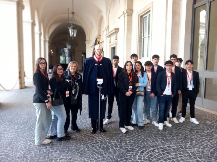 Giorno 11 marzo gli studenti delle classi 1AFM, 1 TUR, 1 CAT, 1 INF, 4CAT e 4 MAT Campofranco sono stati a Roma per partecipare all’iniziativa “Un giorno al Quirinale”, accompagnati dai docenti Camilla Schifanella, Silvio Messsina, Rosa Mendola, Concetta Alaimo e Vincenzo Alaimo. Gli studenti hanno trascorso una mattinata tra i sontuosi saloni del Palazzo Quirinale; partendo dal cortile d’onore i ragazzi hanno potuto ammirare l’architettura rinascimentale e l’imponente scala del Mascarino, guidati da personale esperto che ha fornito dettagliate informazioni sul percorso artistico istituzionale che permette di attraversare il Piano nobile e le sale dove il Presidente della Repubblica svolge le funzioni ufficiali. Particolarmente interessanti le installazioni moderne per la sezione “Quirinale contemporaneo”, voluto dal Presidente Mattarella , un connubio tra innovazione e tradizione. L’esperienza non è stata solo una lezione di storia ma un’immersione nei valori della Repubblica confermando come il Quirinale, definito dal Presidente Mattarella “La casa degli italiani” sia un luogo accessibile a tutti; di significativo valore l’originale della Costituzionale Repubblicana. Nel pomeriggio si è completato il percorso formativo con un tour guidato sia dei luoghi simbolo di Roma che degli altri siti istituzionali come Palazzo Chigi, Montecitorio e Madama.