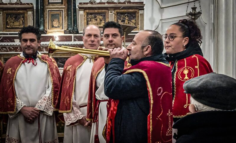 MUSSOMELI – In trasferta a Raffadali ‘u lamìantu matricisi con tromba e tamburo al seguito assieme agli abiti confraternali identificativi dell’Arciconfraternita del SS. Sacramento alla Madrice di Mussomeli. Un raduno interprovinciale che ha registrato, appunto, nella città agrigentina, la presenza del gruppo dei lamentatori mussomelesi con i suoi componenti: Camillo Maida per la “Prima”; Salvatore Castello, Lino Maida, Daniele Di Maria, Giuseppe Zambito per la “SECUNNA”; Franco Ognibene, Giuseppe Riggio, Pippo Sorce, per i BASSI; Fanzittu e secunna con Olga Ognibene; Tromba: Giuseppe Murana. Assieme alla comitiva anche il piccolo Simone Pio Sorce e la fotografa Michela Sorce. Sono questi anche gli altri gruppi che si sono esibiti nella Chiesa Madre di Raffadali; Chorum querentes Popule Meus di Bivona; Confraternite “Ecce Homo” “Madonna del Rosario” “San Giuseppe” di Alimena; Gruppo Polifonico “Lu lamentu” di Cianciana; “ Lu Recitu” di Santo Stefano di Quisquina; Confraternita “SS. Sacramento” di Cattolica Eraclea e il Gruppo dei lamentatori di Raffadali, Compiaciuto e soddisfatto, il gruppo di Mussomeli hanno raccontato di una meravigliosa esibizione lungamente applaudita dal numeroso pubblico, ricordando che con il gruppo di Raffadali, già in passato e precisamente nel 2017, c’era stato un momento culturale, condiviso a Mussomeli, quando si riunì nella terra di Manfredi l’ ICTM il comitato scientifico che raggruppa gli etnomusicologi d’Italia che hanno voluto concludere il loro congresso annuale proprio a Mussomeli; ricordando anche che con il gruppo di Alimena (presente a Raffadali ), nel 2015. c’era stato un momento di ritrovo in occasione di una manifestazione nel paese Madonita Questo per sottolineare che nulla succede per caso se non in un percorso pluridecennale nel quale vede i Lamentatori del Sodalizio Matricese impegnati in prima linea dediti a valorizzare il patrimonio di cui sono eredi. Certamente queste manifestazioni sono delle occasioni di confronto ed un modo di esportare fuori Mussomeli i saperi e le tradizioni. Va detto che Il gruppo ha girato in lungo e in largo, anche con qualche puntata all’estero (Polonia), e sarebbero poche le province e le regioni d’Italia non raggiunte dai lamentatori. Al termine del raduno, targhe ricordo e rinfresco per tutti con un arrivederci alle prossime occasioni.