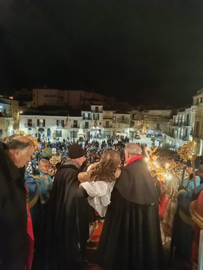 MUSSOMELI – Le insidie del meteo della settimana scorsa, durante il periodo della settimana Santa, non è riuscito a spegnere l’entusiasmo, la partecipazione dei mussomelesi alle celebrazioni liturgiche dei parroci e sacerdoti: Padre Achille Lomanto, Padre Liborio Franzù, Padre Vincenzo Giovino, Padre Rosario Castiglione, Padre Francesco Miserendino, Padre Francesco Mancuso e Padre Fabrizio. Va sottolineato che l’attaccamento alle tradizioni del popolo mussomelese, profondamente sentite a Mussomeli, ha accresciuto, nell’animo dei credenti, ancora di più il desiderio di vivere questi momenti di spiritualità, assai invocata dai sacerdoti che si sono spesi, appunto, a favore della comunità credente: “Santi o Niente”. E così, gli Altari della Reposizione del Giovedì Santo, sono stati allestiti con amore e dedizione, dove i simboli visibili nei cosiddetti “sepolcri” parlavano il linguaggio delle parole evangeliche. La processione mattutina del Venerdì Santo con la confraternita del Sacramento di San Giovanni, o meglio, secondo la secolare tradizione mussomelese, il cammino mattutino dell’Addolorata attraverso le vie e viuzze del paese, in cerca del Figlio, ha suscitato emozioni, allorquando il simulacro dell’Addolorata è arrivato all’interno della chiesa Madre, dove era visibile la Sacra Urna con l’immagine del Cristo. Le lamentazioni, gli squilli di tromba e suono di tamburi, la vivacità ed armonia dei colori confraternali, bandiere e stendardi, abitini, mantelle, cappe, càmici, cingoli, visiere, cappa “du Cristu”, fra canti e preghiere, tutto era riconducibile alla celebrazione dei Misteri. E in questo contesto, impegno, organizzazione ed entusiasmo, hanno sortito una corale partecipazione degna di rilievo, nonostante i rigori del freddo e le improvvise insidie della pioggia. Il rito pomeridiano della Crocifissione, quello serale della Discesa della Croce, la lunga processione con i simulacri della Veronica, della Maddalena, dell’Evangelista San Giovanni, della Sacra Urna e dell’Addolorata fino a raggiungere il piazzale Madrice, dove è avvenuta il rito della sepoltura con l’omelia finale dell’Arciprete Padre Achille Lomanto. Una sepoltura nei cuori dei mussomelesi. Non si può sottacere l’impegno, i sacrifici delle confraternite che hanno profuso in occasione di queste attese ricorrenze. E proprio, in questa circostanza, il primo cittadino Giuseppe Catania, ha indirizzato alla cittadinanza il suo messaggio pasqualle augurale: “Questo momento sia occasione di serenità, di condivisione e di speranza, capace di rafforzare quel legame speciale che ci unisce come comunità. Continuiamo a prenderci gli uni con gli altri, con lo stesso spirito di solidarietà che rende Mussomeli non solo un luogo, ma una casa”. Anche questo evento fa parte della nostra storia locale.