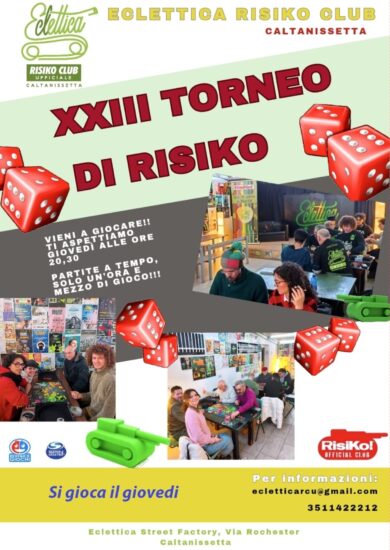 “Da qui a luglio saremo impegnati come Club nell’organizzare la nostra seconda partecipazione alla terza edizione della Festa di Primavera che si terrà alla Villa Amedeo dal 15 al 17 maggio. – continuano a dichiarare dal direttivo – Come l’anno scorso avremo uno stand in cui, oltre a divulgare il gioco del Risiko! con corsi di apprendimento, il sabato e la domenica giocheremo un torneo il “II° Memorial Manliopasqua” intitolato alla memoria di Manlio Pasqualino, presidente del nostro Club scomparso prematuramente un anno fa. Il torneo sarà aperto a tutti e vedrà la partecipazione di giocatori di altre provincie siciliane. Poi dal 10 al 12 luglio avremmo l’onore di essere uno dei tre Risiko Club Ufficiali d’Italia ad ospitare un Raduno nazionale: il 60° Raduno denominato Raduno del Sud, che vedrà la partecipazione di giocatori provenienti da tutta l’Italia e che di giocherà presso l’hotel San Michele che già nel 2024 ha ospitato questo prestigioso evento. E poi il nostro Club, con i suoi giocatori e soci, sarà presente ad eventi nazionali come il Master di Catania 26 aprile, il 59° Raduno Nazionale (Raduno del Nord) che si terrà a Vicenza dal 29 al 31 maggio, il Master di Venezia il primo di giugno”.