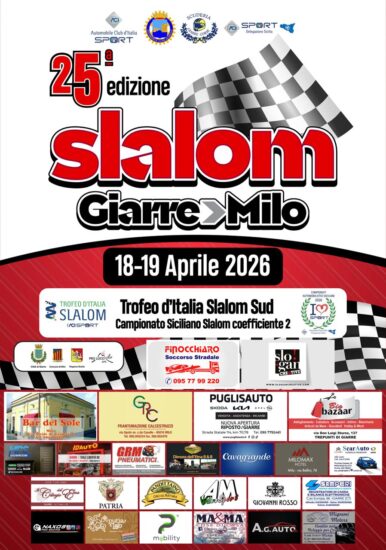 Tutto pronto per la 25ª edizione dello Slalom Giarre–Milo, in programma sabato 18 e domenica 19 aprile, primo grande appuntamento della stagione automobilistica in provincia di Catania. Due giorni all’insegna dello sport, della tecnica e dell’adrenalina lungo lo storico tracciato di circa 3 chilometri, uno dei più apprezzati del panorama siciliano, che si snoda tra tornanti e scorci suggestivi alle pendici dell’Etna.
