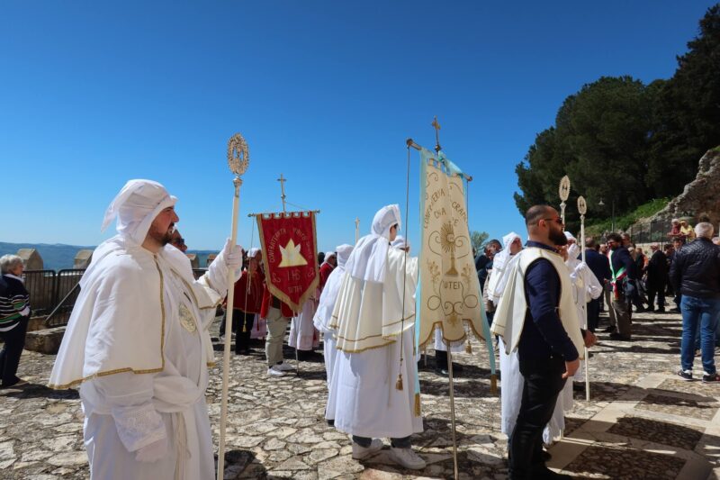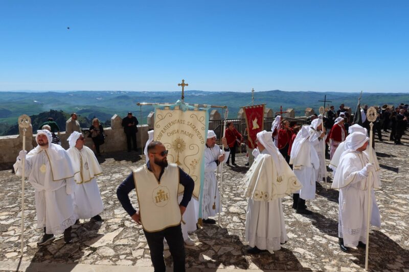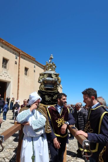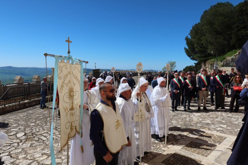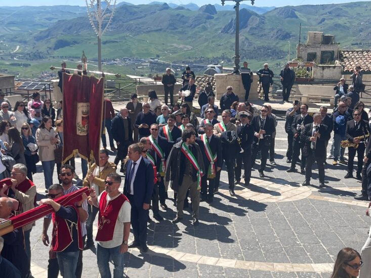 SUTERA – Si è celebrata, il martedì dopo Pasqua, la festa di San Paolino, compatrono del paese. Un’antichissima festa che ebbe origine da diversi secoli dopo la traslazione delle sacre reliquie dei due santi, custodite all’interno “di li Santi Casci”, San Paolino e Sant’Onofrio (altro compatrono). Le urne, che secondo tradizione ospitano le spoglie mortali dei due santi. “Li Santi Casci” vengono portate in una spettacolare processione con le tre confraternite del SS. Sacramento (bianchi), dello Spirito Santo (rossi) e di Maria SS. Degli Agonizzanti (verdi), e mentre le due urne e la statua di San Paolino sfilano sulle strette stradine, si implora l’intercessione dei due santi. La festa di San Paolino è molto caratteristica e suggestiva anche per la naturale conformazione del territorio su cui si erge la maestosa rocca sulla cui sommità sorge il santuario di San Paolino, Dalla sommità delle rocca è visibile un panorama davvero incantevole. La ricorrenza suterese richiama numerosissimi visitatori e fedeli che salgono a piedi sulla rocca per assistere alla processione suggestiva delle urne e delle statue dei due santi verso la chiesa di S. Agata, da dove poi, sia i simulacri che “li Santi Casci”, ritorneranno sulla Rocca la domenica successiva. La storia racconta che le reliquie di S. Paolino (vescovo di Nola) e S. Onofrio (re di Persia), furono trasportate a Roma dai cristiani nell’anno 1001 e successivamente donate al principe Federico Chiaramonte nel 1220. La nobile famiglia le custodì gelosamente e, circa un secolo dopo, appunto nel 1336, venne fatto costruire da Giovanni Chiaramonte il santuario di S. Paolino e le sacre reliquie vennero quindi donate da un cugino, che le aveva ereditate, e da allora sono custodite sulla cima della rocca. Per tradizione i suteresi suonano il campanone, posto alla sommità del monte. Alla festa sono stati presenti le Autorità locali , 10 Sindaci in onore di San Paolino Vescovo, Compatrono della Città di Sutera, le forze dell’ordine. le tre confraternite con le loro insegne e gli abiti confraternali, e le associazioni. Prima della processione l’Arciprete, Padre Massimo Guarino ha celebrato la liturgia eucaristica ed era presente anche l’arciprete di Villalba Padre Marko Cosentino. Una festa, purtroppo, segnata dalla recente frana che sta causando preoccupazione, ansia nella comunità suterese che invoca l’intercessione dei Santi San Paolino e Sant’Onofrio.