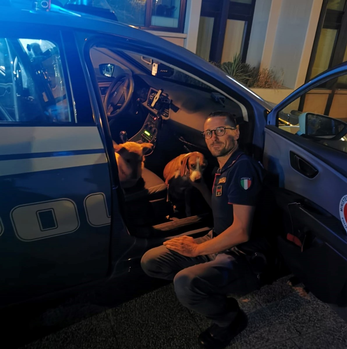 Impauriti dai fuochi d’artificio, due cagnolini accolti da un poliziotto all’interno di una volante
