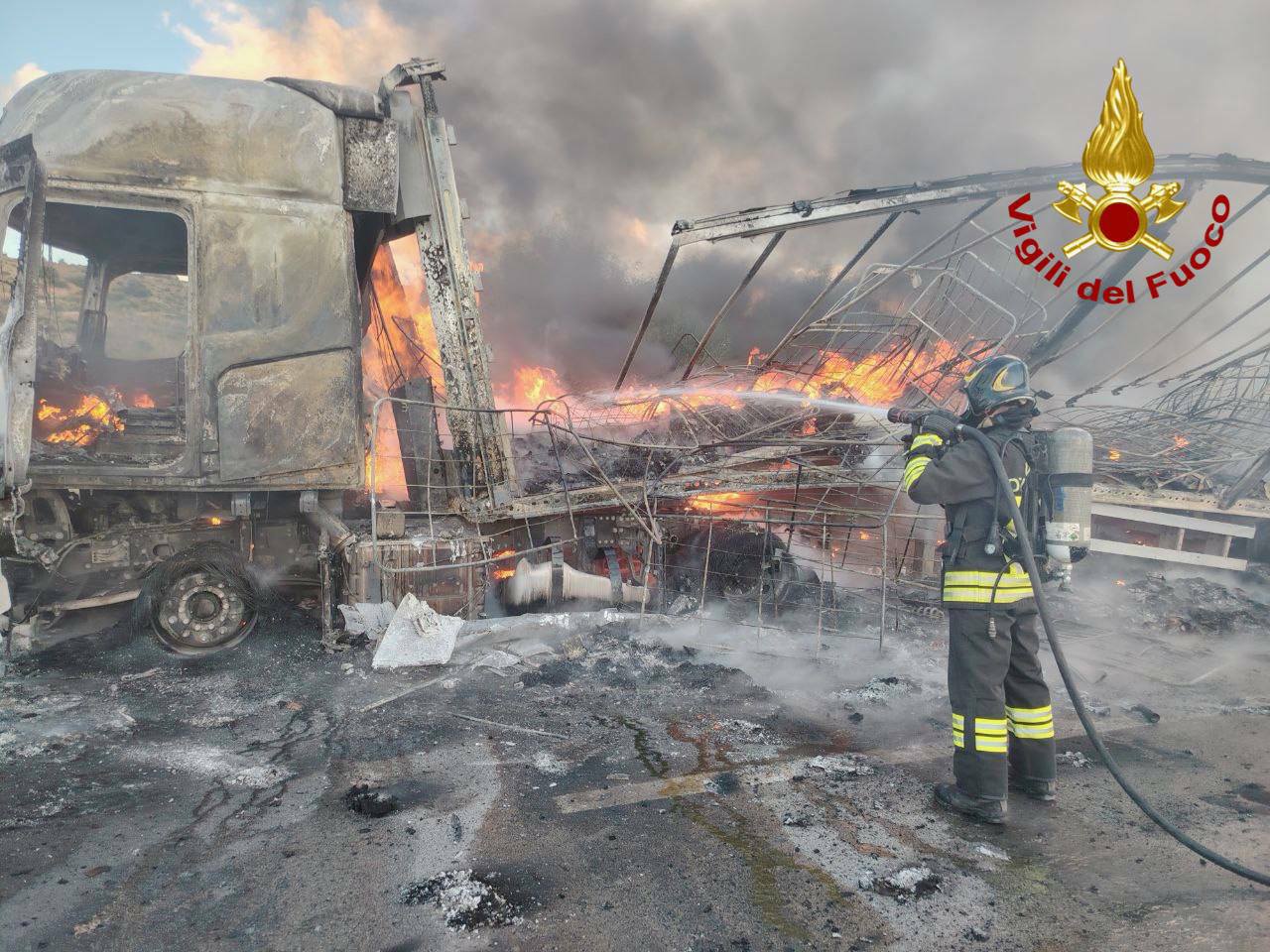 Sulla A19 Palermo – Catania prende fuoco rimorchio contenente capi di abbigliamento: autista illeso