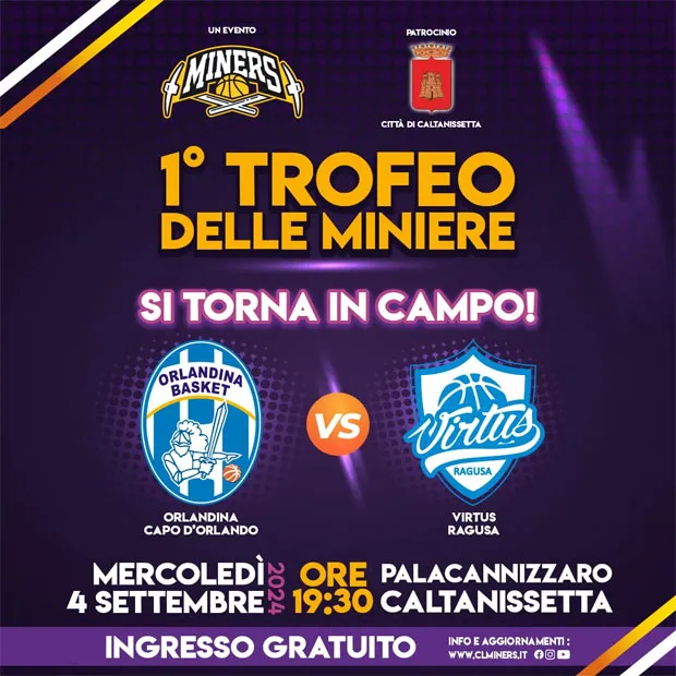 Il grande Basket al Pala Cannizzaro: il 4 settembre è sfida tra Orlandina Basket e Virtus Ragusa per il 1° Trofeo delle Miniere