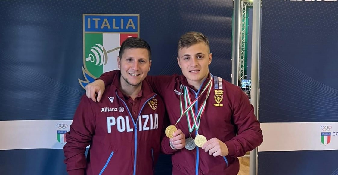 Fiamme Oro. Doppia gioia in casa Scarantino per il titolo italiano juniores di pesistica: Claudio campione, Mirco prima vittoria da tecnico