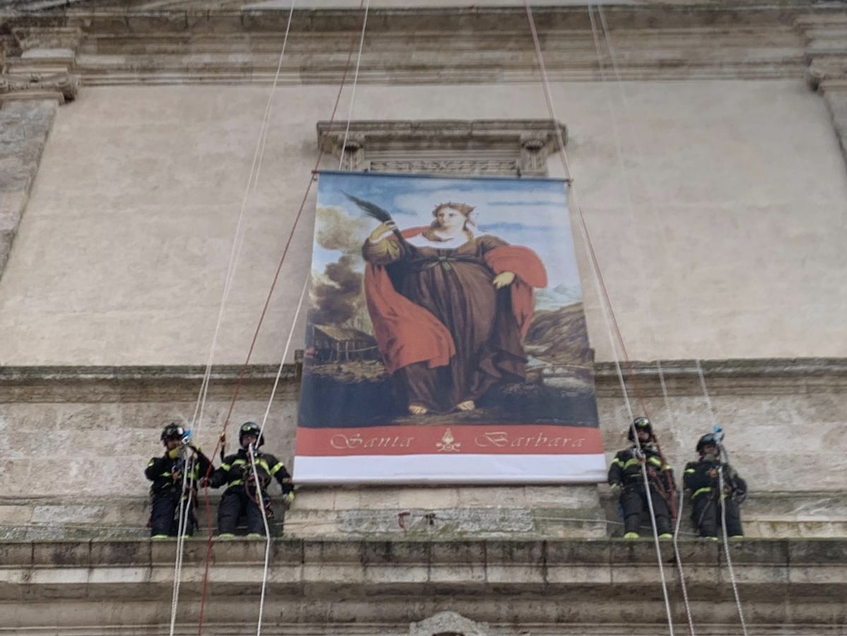 Santa Barbara, Caltanissetta rende omaggio ai Vigili del Fuoco: Messa solenne in Cattedrale e spettacolare omaggio sulla facciata