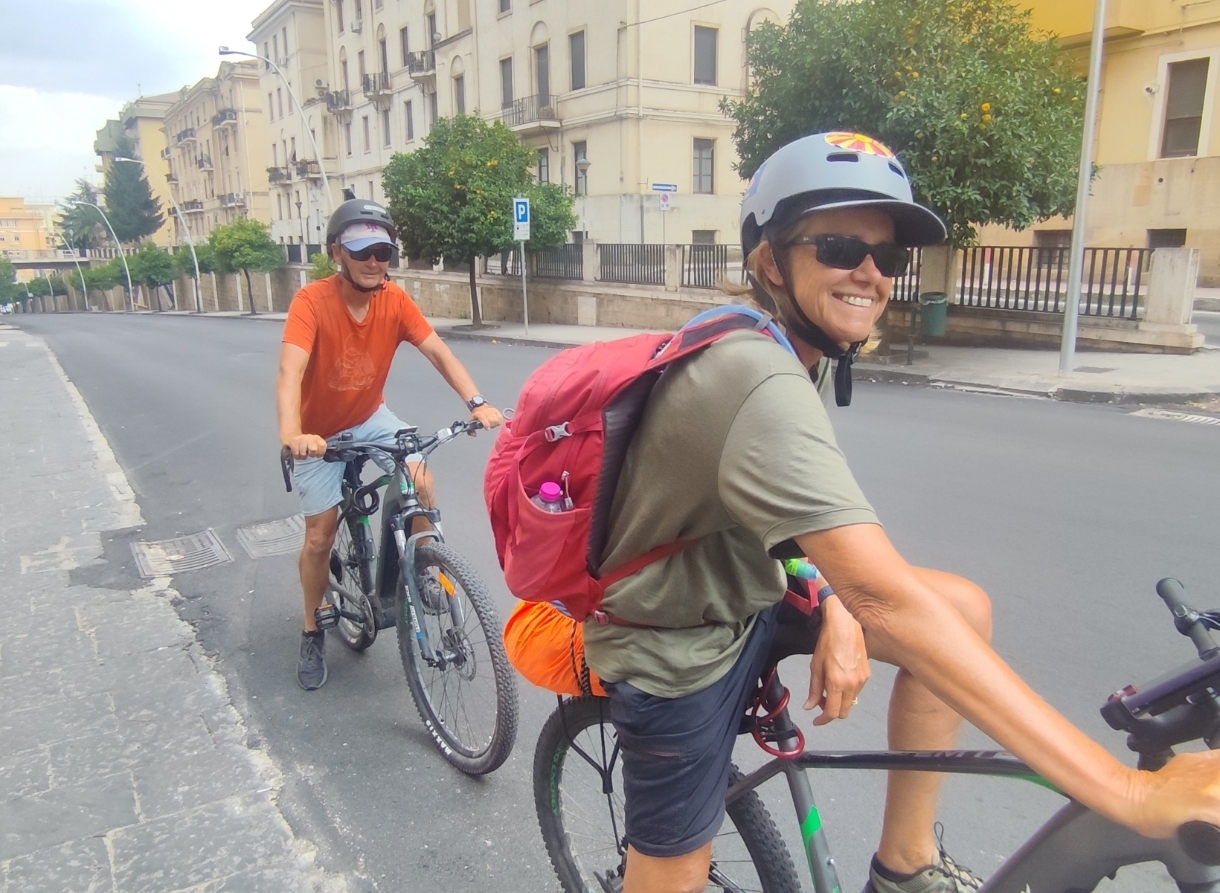 Dalla Nuova Zelanda alla splendida Sicilia: in vacanza tra Cefalù e Agrigento, fanno tappa a Caltanissetta in bici