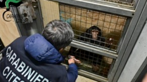 Scoperto dai Carabinieri di Catania uno Scimpanzé illegalmente detenuto, trovato in un’abitazione privata e lagato a una catena